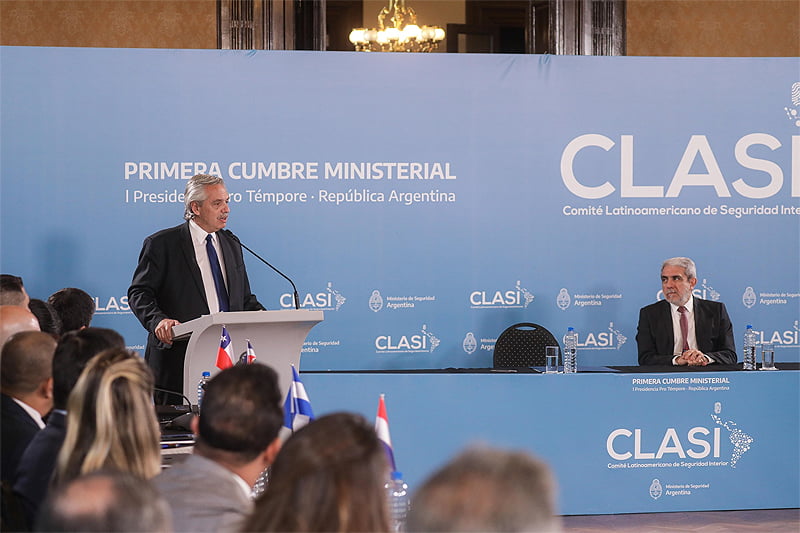 El presidente Alberto Fernández encabezó ayer el cierre de la primera Cumbre Ministerial del Comité Latinoamericano de Seguridad Interior, que tiene como objetivo definir prioridades en el intercambio de información criminal y establecer planes de acción operativos para alcanzar resultados más eficaces en la materia, en el Centro Cultural Kirchner.